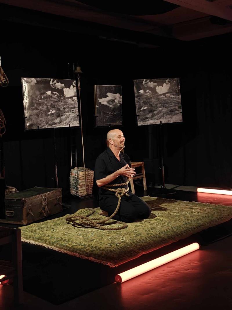 Εκεί απ’ όπου ξεκινάει ένα ταξίδι σε πελάγη μνήμης και φαντασίας. Μέσα σε μια θάλασσα, πότε άγρια και πότε όχι, ξεπηδάνε σαν σκιές οι μνήμες και τα μυθικά τέρατα, οι φόβοι και τα πάθη, οι παλιές κι οι νέες αγάπες. Έχοντας ως οδηγό τη ζωή του ναύτη, με τον Ξεναγό να ρίχνει άγκυρες της δικής του ζωής και σκέψης, το παρελθόν συνδέεται με το παρόν και το μέλλον. Ξεναγός και ναύτης μας μιλούν για ταξίδια, για στάσεις, για λιμάνια, για ζωές. Διακαής τους πόθος να ανακαλύψουν τι σημαίνει ελευθερία και πώς χαράσσει κάποιος τη δική του ρότα στη ζωή… γιατί όχι και στο θάνατο. Αυτό το ταξίδι αποτελεί έναν ναυτικό κόμπο που συνδέει τον μύθο με την πραγματικότητα, το αληθινό με το φαντασιακό. Το έκθεμα αυτό δεν είναι απλώς μια εικαστική εγκατάσταση: είναι ένα σπίτι, ένα πλοίο, ένα ναυάγιο, είναι ο χώρος συνάντησης με τη θαλπωρή, τη μητρική γλώσσα, τη συλλογική μνήμη, αλλά και ένας τόπος ανάπαυσης, όλων αυτών που δεν ανήκουν, ή δεν θέλουν να ανήκουν, ούτε στην Κόλαση ούτε στον Παράδεισο.