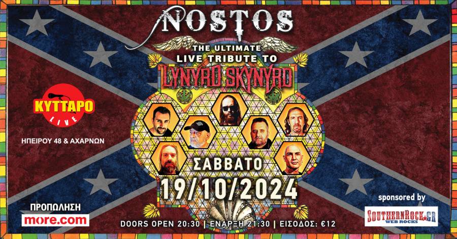 Σαράντα επτά χρόνια μετά το αεροπορικό δυστύχημα και την κυκλοφορία του Street Survivors, στο Κύτταρο θα φυσήξει και πάλι, αγαπημένος Νοτιάς!! Οι NOSTOS, η μπάντα συνώνυμο της Southern Rock και μοναδική αναγνωρισμένη Lynyrd Skynyrd Tribute Band στην Ελλάδα, 32 χρόνια «στο δρόμο», από το 1992(!!), κάνουν στάση στην Ηπείρου και Αχαρνών και στήνουν ένα καταιγιστικό τρίωρο Live Tribute στην πορεία των Θεών από το Νότο, απόλυτα πιστό και αντάξιο της σπουδαιότερης Southern Rock band του πλανήτη...