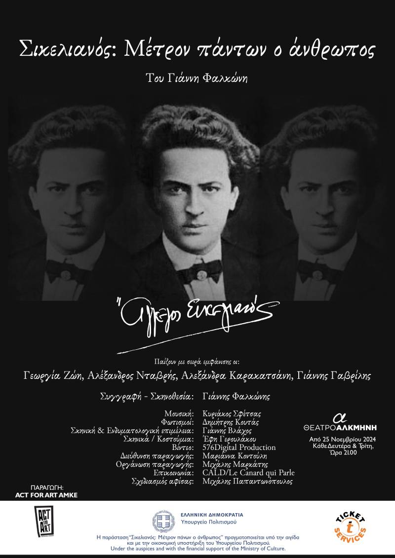 *Η παράσταση “Σικελιανός: Μέτρον πάντων ο άνθρωπος” πραγματοποιείται υπό την αιγίδα και με την οικονομική υποστήριξη του Υπουργείου Πολιτισμού.