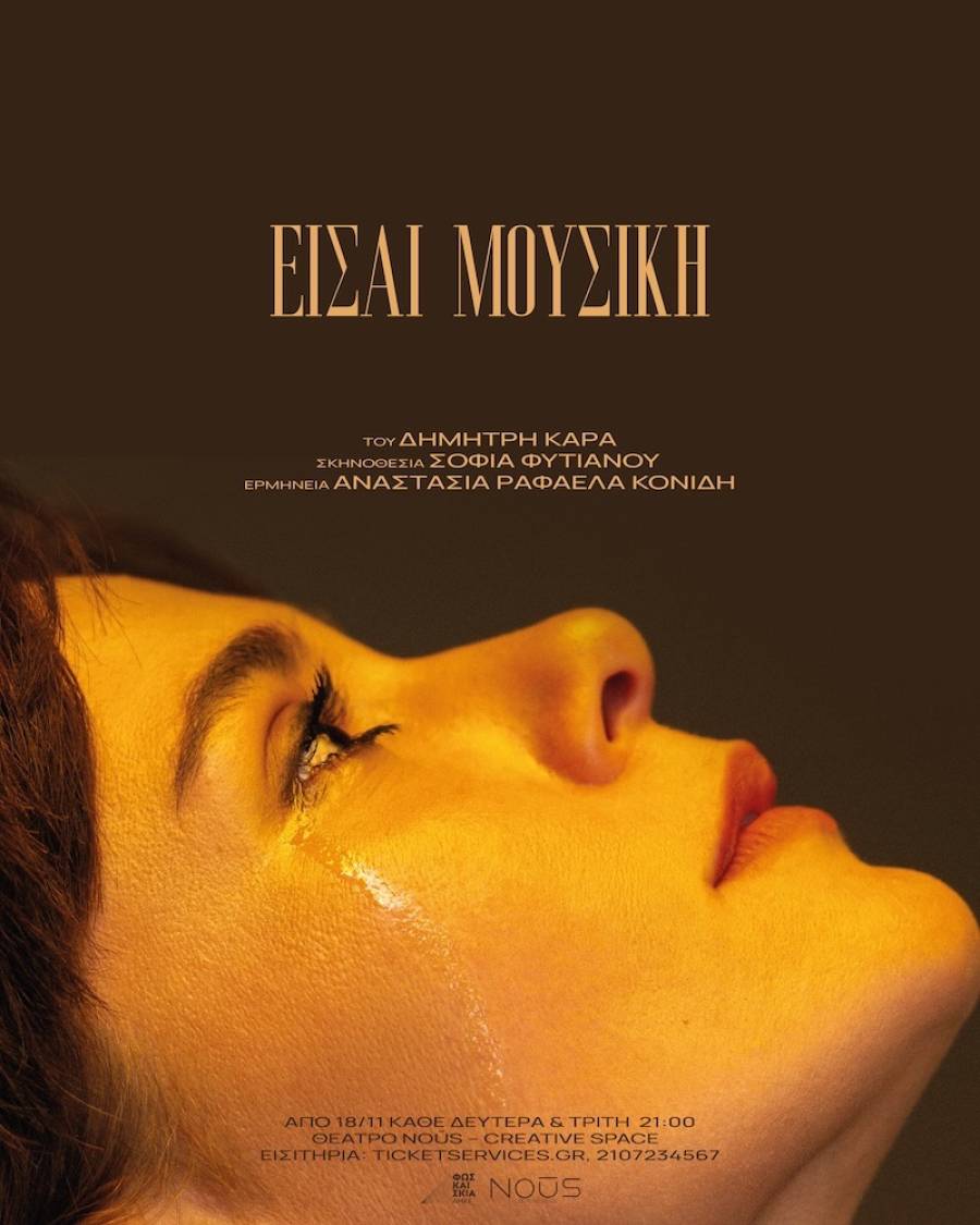 " Είσαι Μουσική " ο θεατρικός μονόλογος του Δημήτρη Καρά σε σκηνοθεσία Σοφίας Φυτιάνου με την Αναστασία Ραφαέλα Κονίδη έρχεται στο Θέατρο Nous Creative Space από τις 18 Νοεμβρίου.