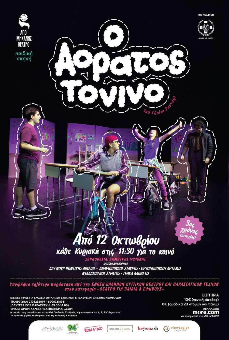 Τρίτος χρόνος επιτυχίας της παιδικής παράστασης «Ο αόρατος Τονίνο» του Τζάνι Ροντάρι - Έναρξη, 12 Οκτωβρίου 2025