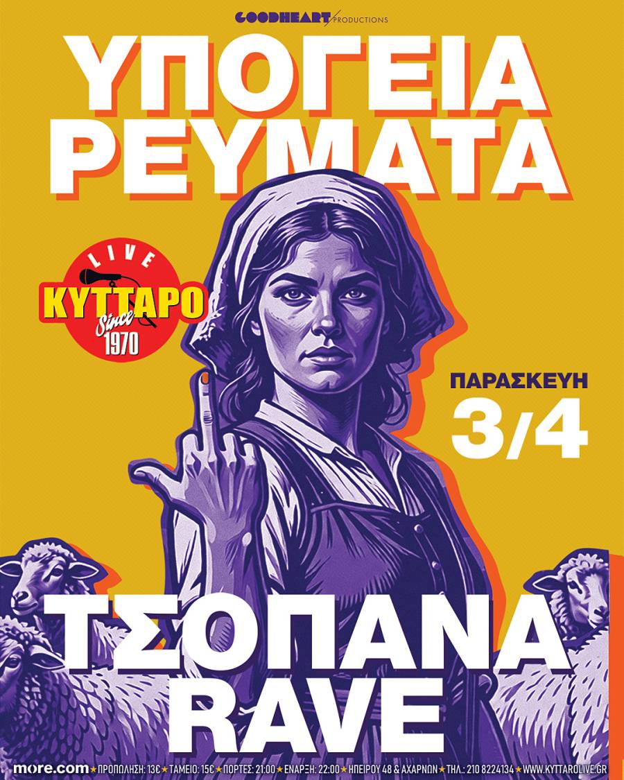 ΥΠΟΓΕΙΑ ΡΕΥΜΑΤΑ & ΤΣΟΠΑΝΑ RAVE ΠΑΡΑΣΚΕΥΗ 3 ΑΠΡΙΛΙΟΥ LIVE στο ΚΥΤΤΑΡΟ!