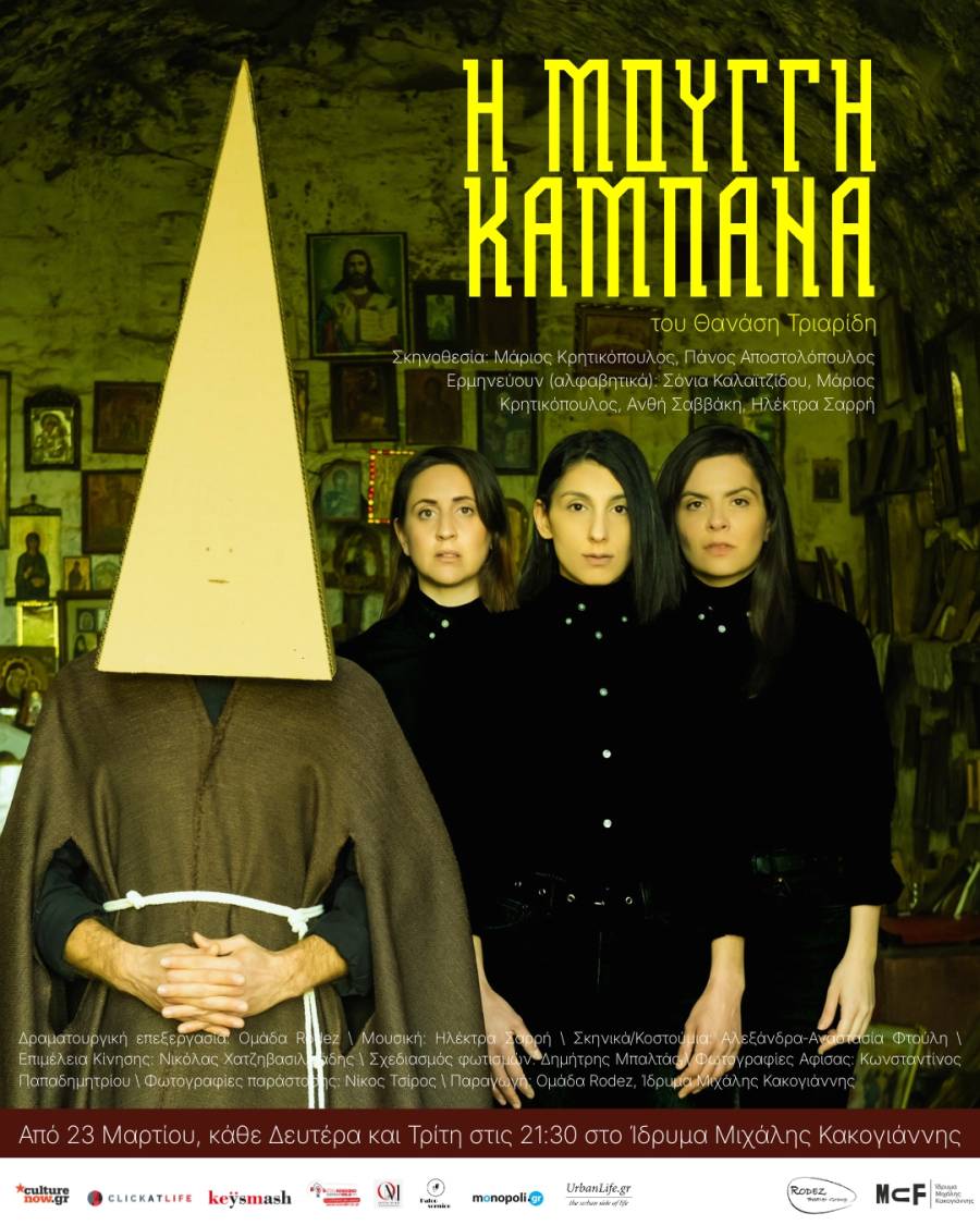 Η παράσταση «Η Μουγγή Καμπάνα» της Ομάδας Rodez, βασισμένη στη συγκλονιστική και τρομακτικά επίκαιρη νουβέλα του Θανάση Τριαρίδη, μετά από δύο επιτυχημένες χρονιές στην Αθήνα, τις sold out παραστάσεις στην Πάτρα και στη Θεσσαλονίκη όπου παρουσιάστηκε στο 59ο Φεστιβάλ Δημητρίων, επιστρέφει για περιορισμένο αριθμό παραστάσεων στο Ίδρυμα Μιχάλης Κακογιάννης από 23 Μαρτίου και κάθε Δευτέρα και Τρίτη στις 21:30.