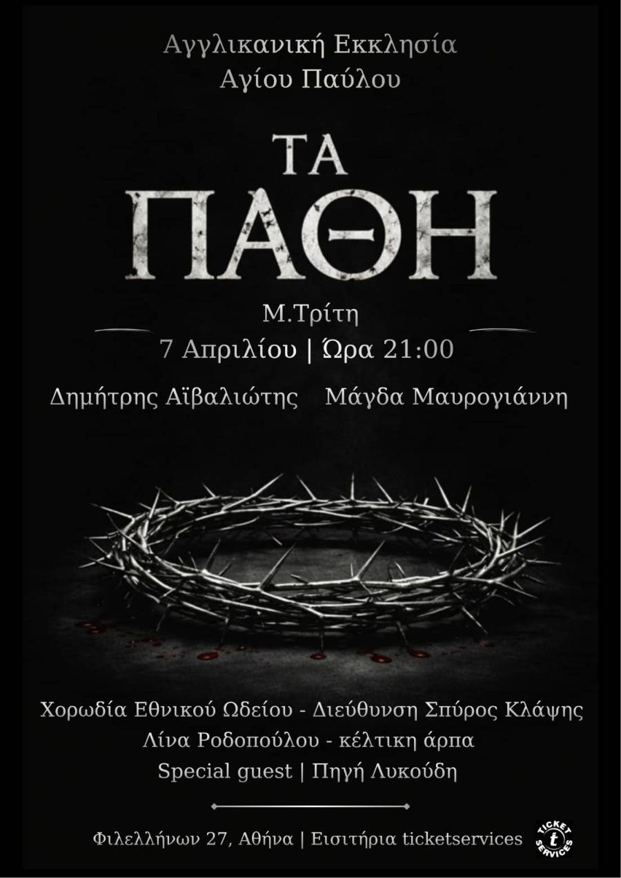 Δημήτρης Αϊβαλιώτης - Μάγδα Μαυρογιάννη "ΤΑ ΠΑΘΗ" - Μ. Τρίτη 7 Απριλίου ώρα 21:00, Αγγλικανική Εκκλησία Αγίου Παύλου