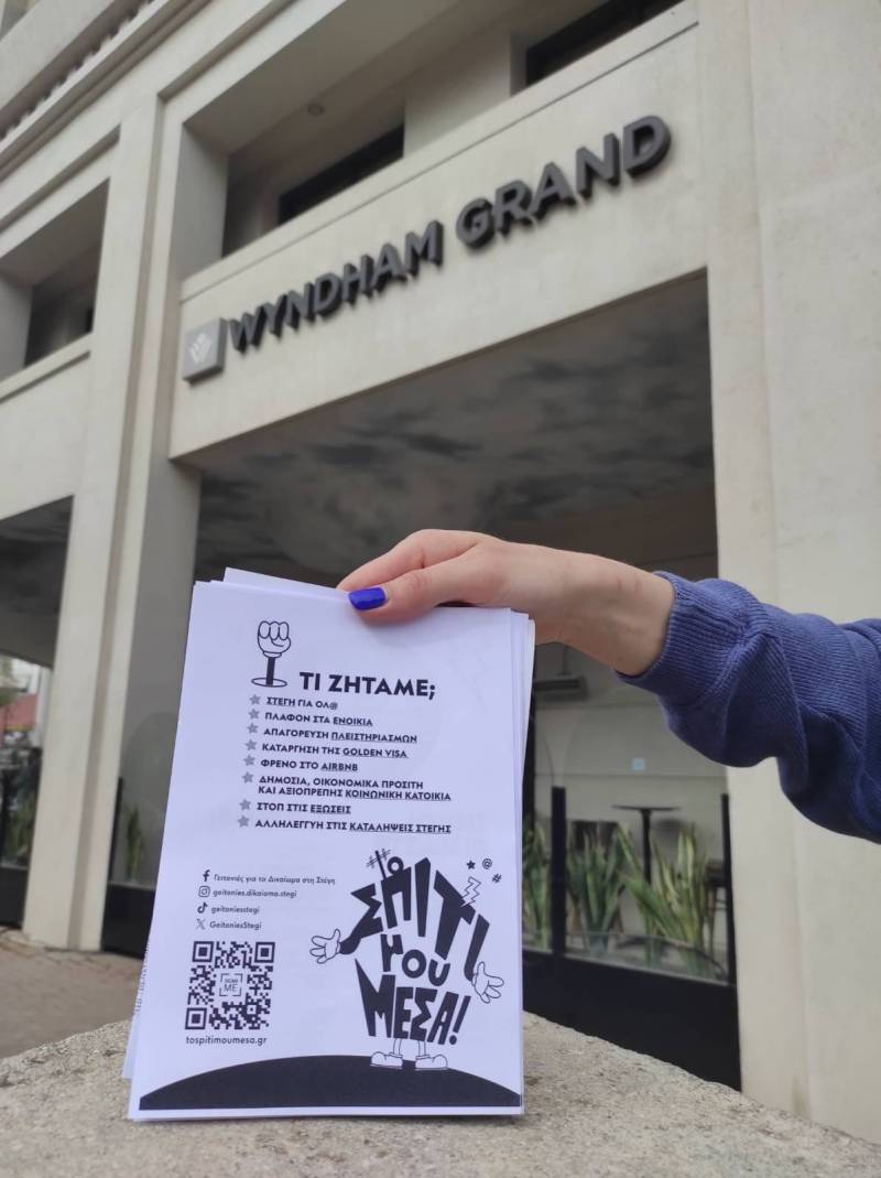 Συλλογικότητες που δραστηριοποιούνται για το δικαίωμα στη Στέγαση βρέθηκαν έξω από το ξενοδοχείο Wyndham Grand Athens όπου πραγματοποιείται το συνέδριο Real Estate Summit.