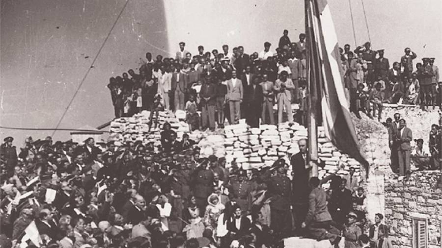 Το μόνο που απέμενε ήταν η υποστολή της ναζιστικής σημαίας από τον Ιερό Βράχο της Ακρόπολης. Ένας Γερμανός στρατιώτης κατέβασε τη σβάστικα χωρίς καμία επισημότητα στις 9:15 το πρωί, την πήρε υπό μάλης και αποχώρησε με σκυμμένο το κεφάλι, σηματοδοτώντας το τέλος της γερμανικής κατοχής που διήρκεσε 1.625 μέρες και την αρχή ενός τρελού πανηγυριού στους δρόμους της Αθήνας.