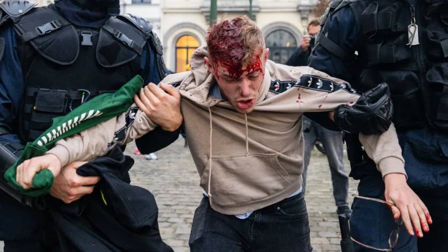 Ωστόσο η διαμαρτυρία σημαδεύτηκε από επεισόδια, με τη βελγική αστυνομία να πνίγει με δακρυγόνα και με νερό υπό πίεση (αύρα) τους διαδηλωτές, που πέταξαν πέτρες και... πατάτες στις δυνάμεις ασφαλείας.