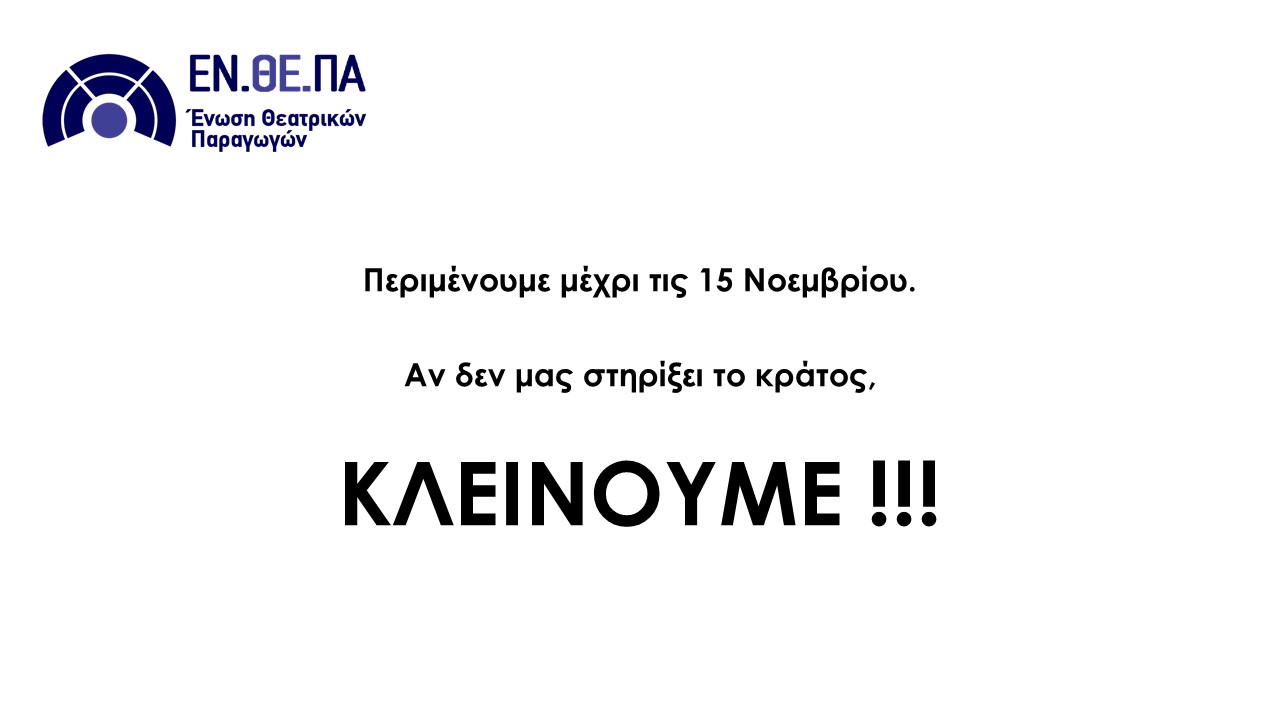 ΕΝΩΣΗ ΘΕΑΤΡΙΚΩΝ ΠΑΡΑΓΩΓΩΝ ΓΙΑ ΤΟ ΚΛΕΙΣΙΜΟ ΤΩΝ ΘΕΑΤΡΩΝ
